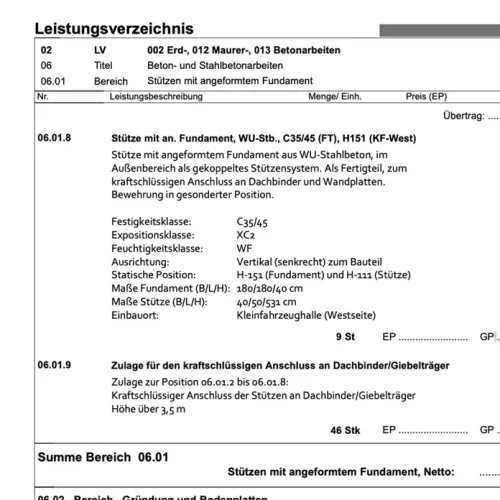 Auf Grundlage der Ausführungspläne und gemäß HOAI sowie VOB erstellen wir präzise Bau- und Ausschreibungstexte, detaillierte Leistungsverzeichnisse und technische Berichte, damit Ihr Projekt reibungslos und termingerecht voranschreitet.